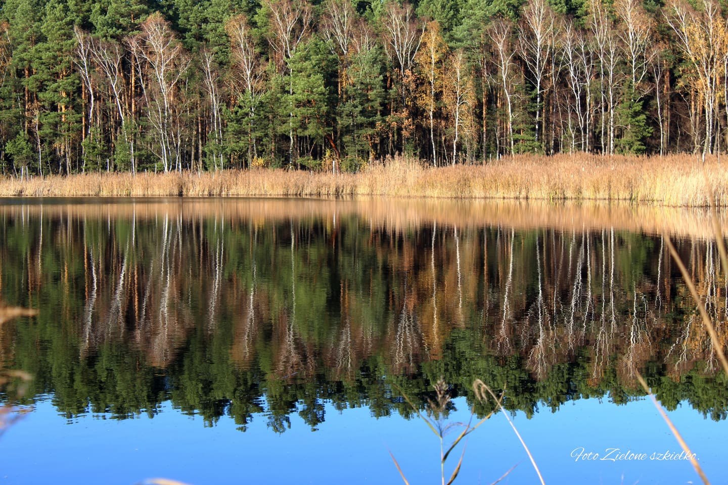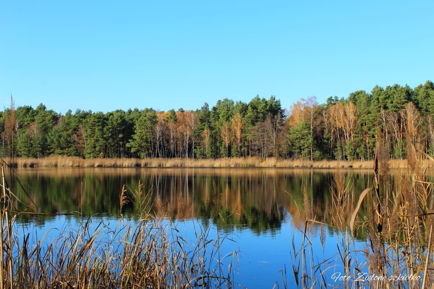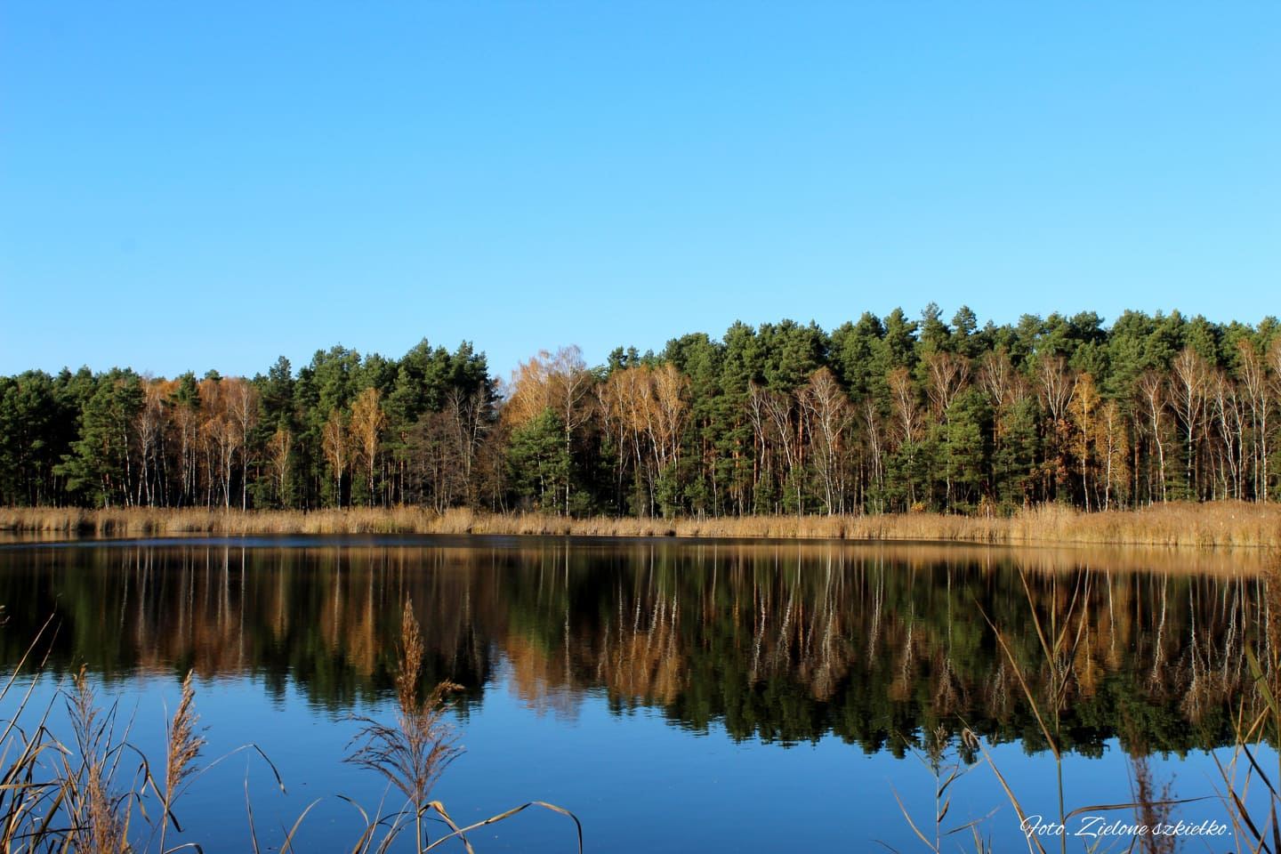 Ostatnia niedziela października zachwyciła mocą słońca a błękitne niebo, które można by porównać do lipcowych dni napawało optymizmem. Nie można było nie wykorzystać takiej pogody, szczególnie że ostatni czas był dosyć intensywny i nawet nie wiem, kiedy minął październik. To był ten dzień na sprawdzenie miejsca, które często zostawało obok podczas naszych małych i dużych podróży – Rezerwat Przyrody Śliże – bo to o nim mowa. Jest to torfowiskowy rezerwat położony na terenie gminy Jadów, w otulinie Nadbużańskiego Parku Krajobrazowego. Rezerwat utworzono w celu ochrony dwóch zarastających jezior dystroficznych. Przechodząc spacerkiem przez las, odkryliśmy kolejne bajeczne miejsce, woda niczym lustro odbijała rosnące wokół kolorowe drzewa. Brzegi zbiornika wodnego porośnięte są wysokimi trawami której wiechy unosił delikatnie wiatr. Łapiąc w obiektyw ujęcia wiedziałam, że to będą wdzięczne zdjęcia. Takie wydanie jesieni chcę zapamiętać, bo jesień potrafi być urzekająca.